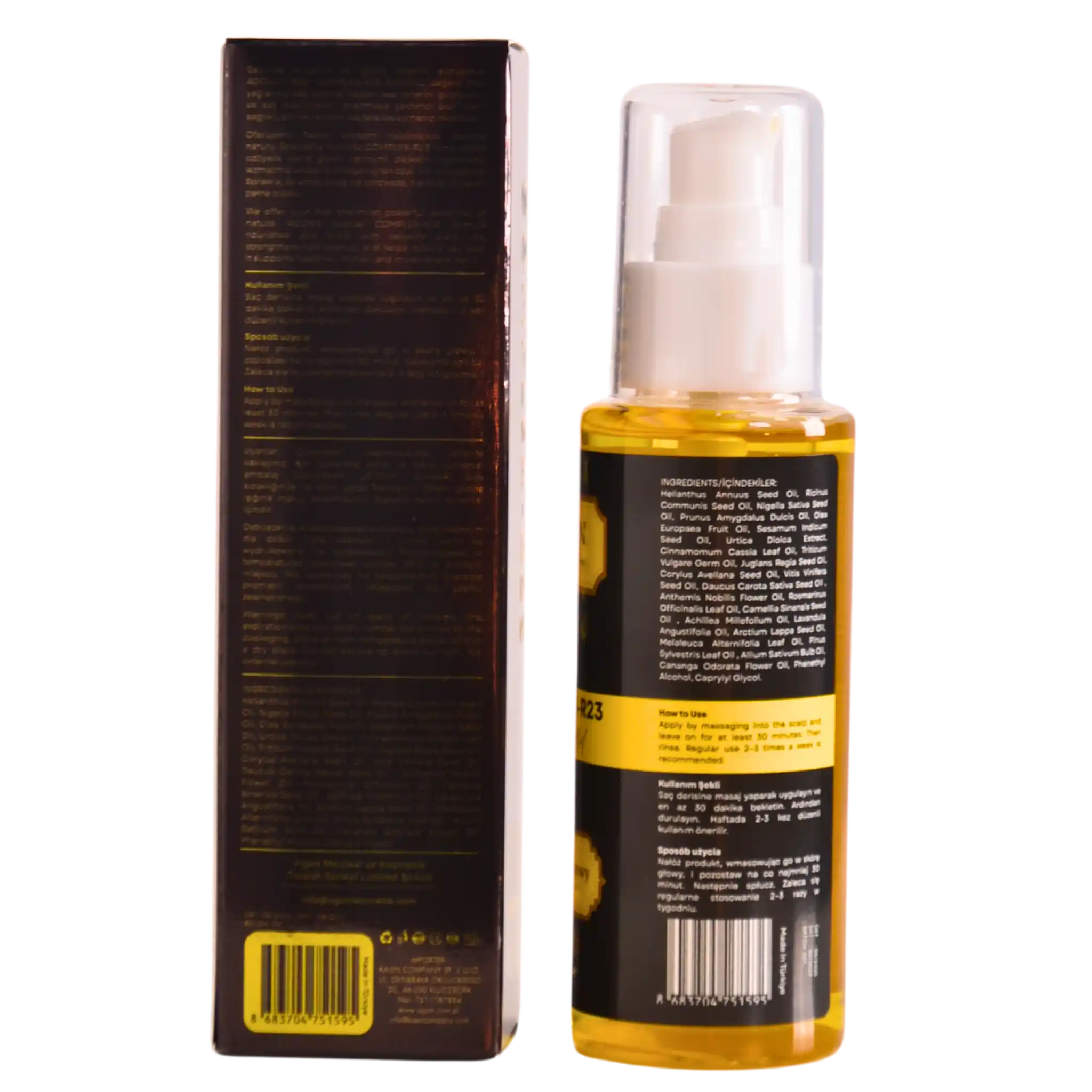 Ożyw swoje włosy dzięki AGON COMPLEX-R23 Odżywczemu Olejkowi do Pielęgnacji Włosów. To intensywne, 100 ml leczenie to bogata mieszanka naturalnych olejów roślinnych i ekstraktów, stworzona, aby głęboko odżywić skórę głowy i włosy. Ma na celu przywrócenie blasku, miękkości i witalności.